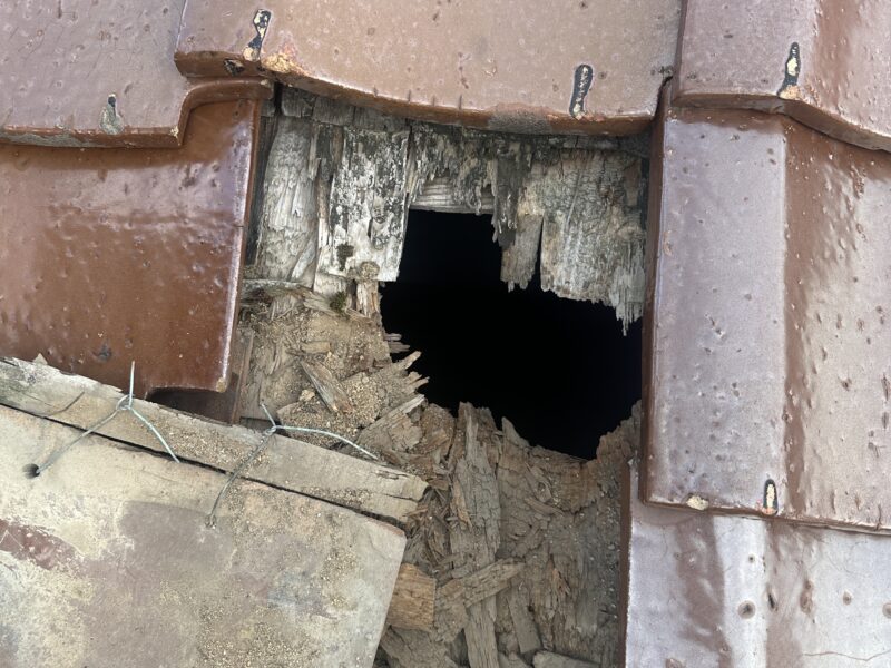 瓦がズレているレベルを通り越し...下地に大きな穴が空いてしまっていました。この穴から雨が入り放題です。