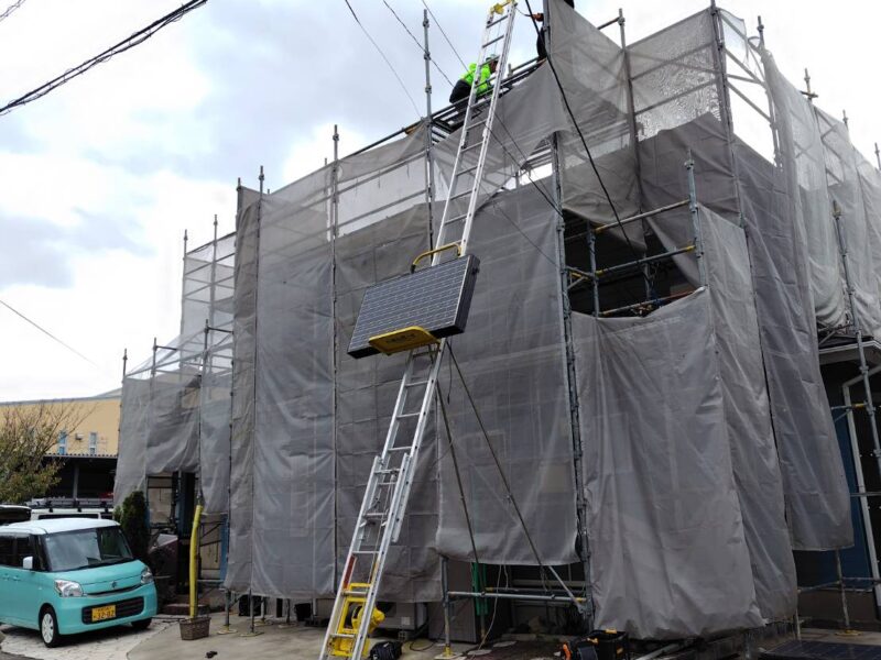 屋根カバー工法に先立ち、既存の太陽光パネルを撤去します。