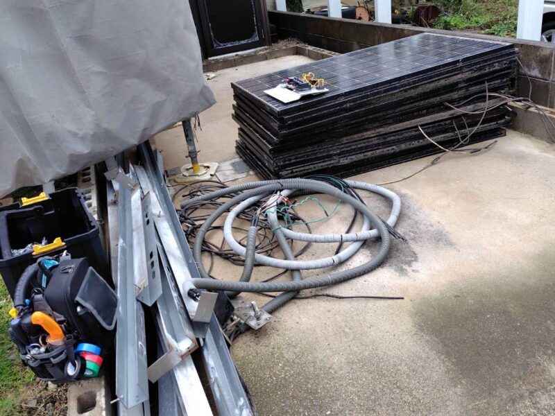 撤去したパネルは屋根工事に支障が出ないよう整理・搬出しています。
